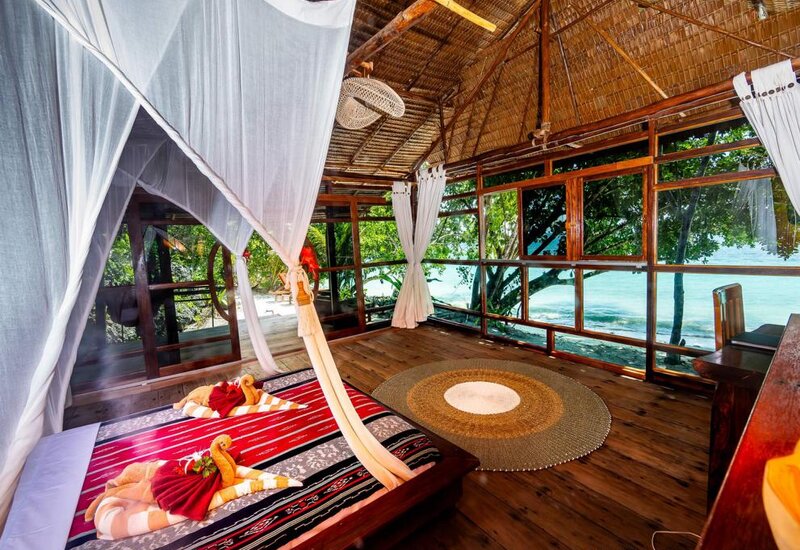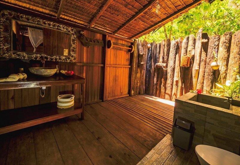 Alle Bungalow Cottages verfügen über ein halb offenes Badezimmer, Terrasse und Sonnenliegen, Safe, Schreibtisch, Wasserspender, Ventilator, Moskitonetz sowie diversen Sitzmöglichkeiten. Über eine Panorama-Glasfront hast Du zudem einen atemberaubenden Ausblick auf den Strand und das Meer. Für Massagebehandlungen steht ein eigener Pavillon am Ende der Anlage zur Verfügung..